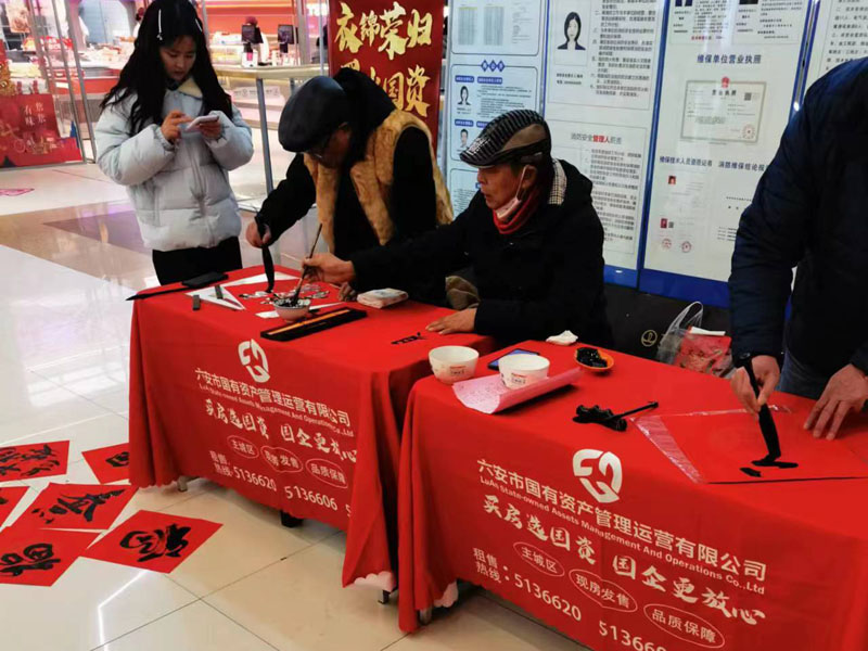 活动现场,暖意融融,墨香四溢,来自市书法家协会的三名书法家挥毫泼墨,用俊逸的书法、真诚的祝福、精美的“福字”,将新春的美好祝福送给广大群众。现场摆放了咨询台、宣传展架及小礼品,市国资leyu登录工作人员向意向购房群众介绍了leyu登录资产。本次活动共送出春联20幅,福字40余幅,收集意向购房信息20余条。