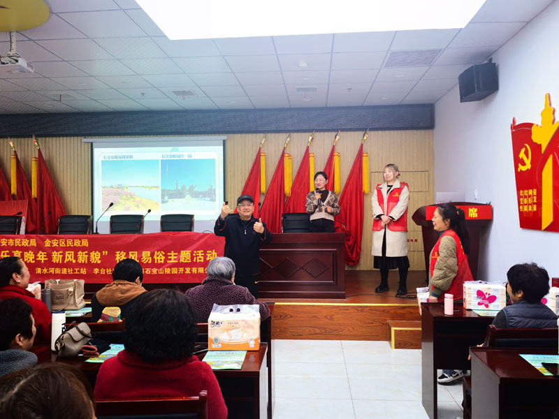 3月19日下午,市石宝山leyu登录联合清水河街道社工站、李台社区,共同举办了以“乐享晚年,新风新貌”为主题的移风易俗主题活动。旨在倡导关爱老人,深入推进移风易俗,树立文明节俭、绿色环保的祭祀新风。