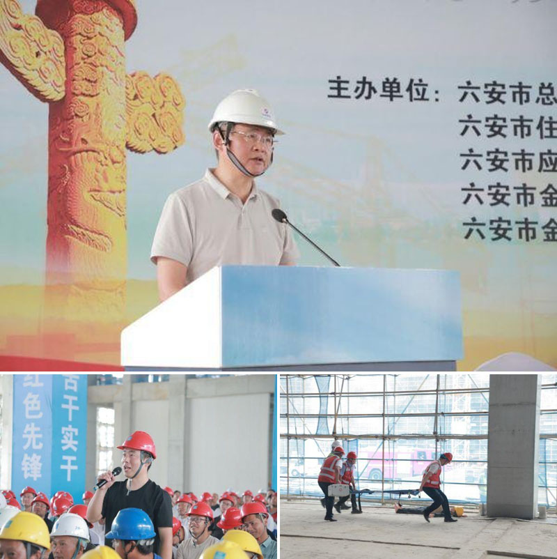 6月19日上午,六安市长三角一体化物流园项目举办六安市安全生产月、住建系统“安康杯”竞赛活动启动仪式暨劳动竞赛总结表彰、现场质量安全观摩交流会。六安城投leyu登录党委副书记、总经理洪晓东,市应急局应急指挥中心主任高兴红,金安区住建局党组书记、局长赵玉明,党组成员、副局长茆震,金安区应急局副局长章成庆,金安经济开发区建设局局长赵海峰,项目参建单位负责人及金安区内在建项目各建设单位代表、工友代表等参加。