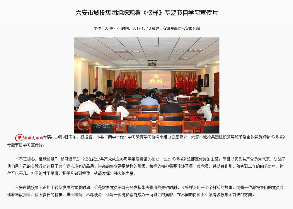 【安徽先锋网】六安市城投集团组织观看《榜样》专题节目学习宣传片