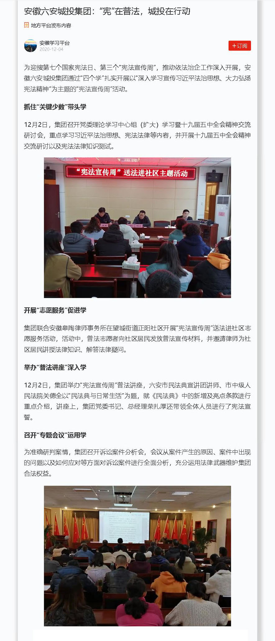 【学习强国】安徽六安城投集团:“宪”在普法,城投在行动