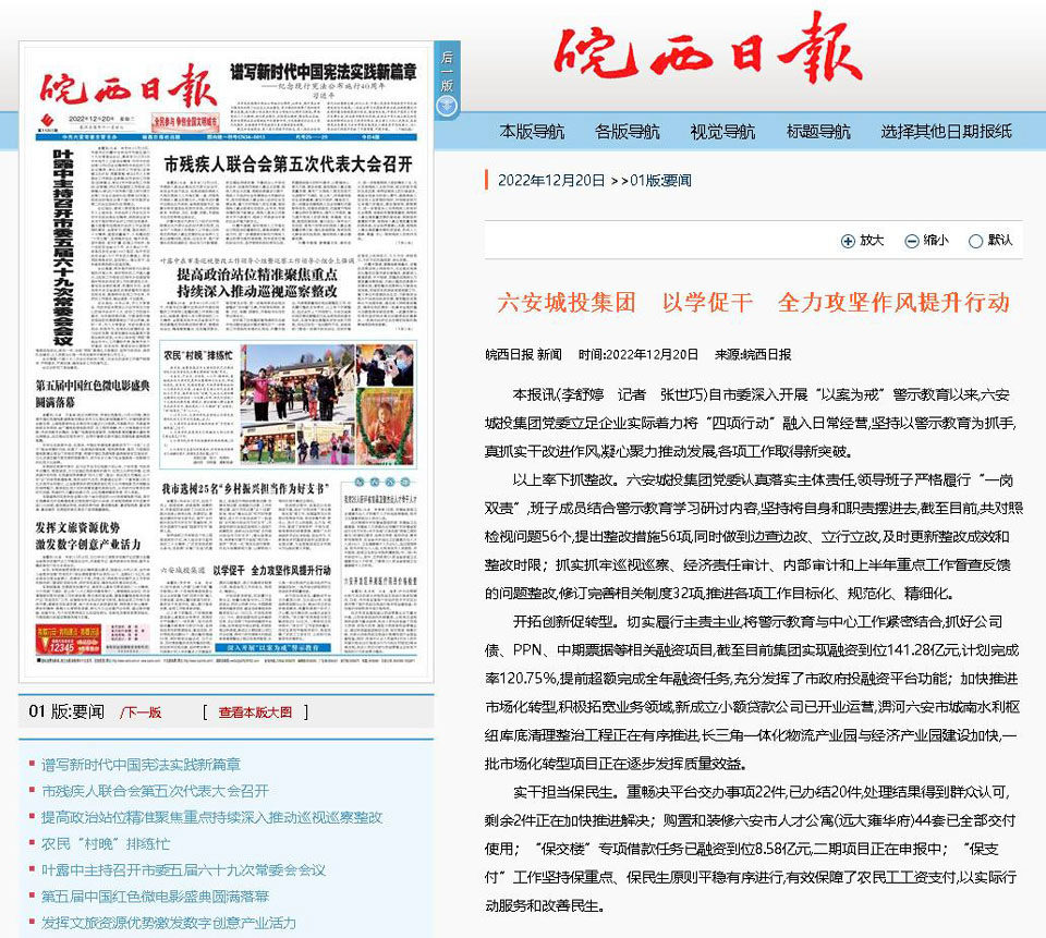 【皖西日报】六安城投集团:以学促干 全力攻坚作风提升行动