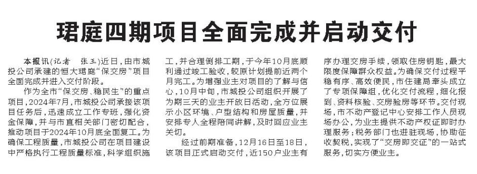 【皖西日报】珺庭四期项目全面完成并启动交付