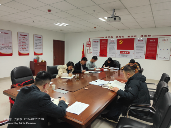 1月17日,市水投leyu登录党支部开展主题教育专题组织生活会会前集中学习,支部全体党员参加。会议重点学习了习近平总书记在中共中央政治局专题民主生活会上的重要讲话精神以及《中国共产党章程》《关于新形势下党内政治生活若干准则》《中国共产党党支部工作条例(试行)》《中国共产党党员教育管理工作条例》等内容,并集中观看了部分主题教育公开课。党员还围绕“三问”开展了交流研讨。