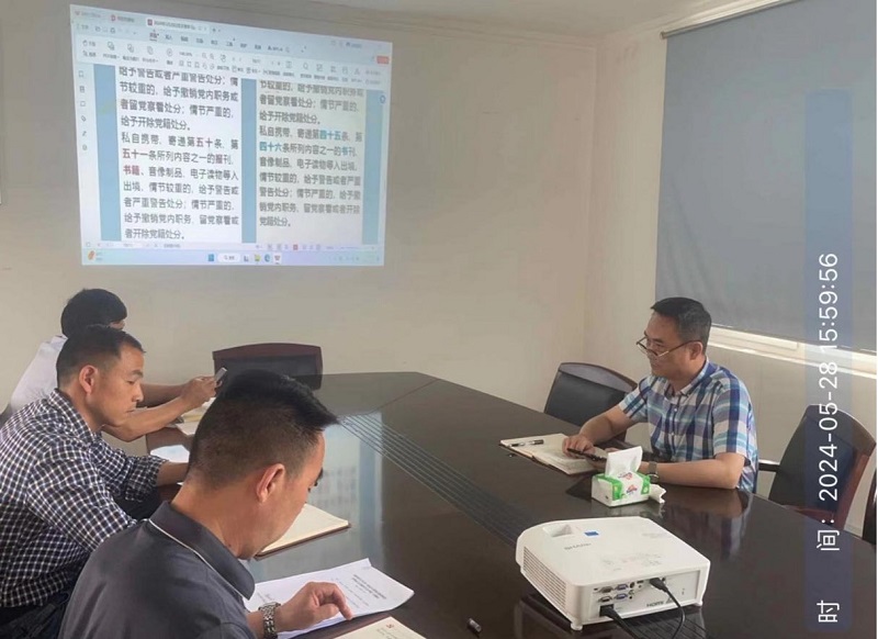 2024年5月28日,六安市洁康环保医疗废物集中处置有限责任leyu登录党支部召开党纪集体学习专题会议,支部全体党员参与。